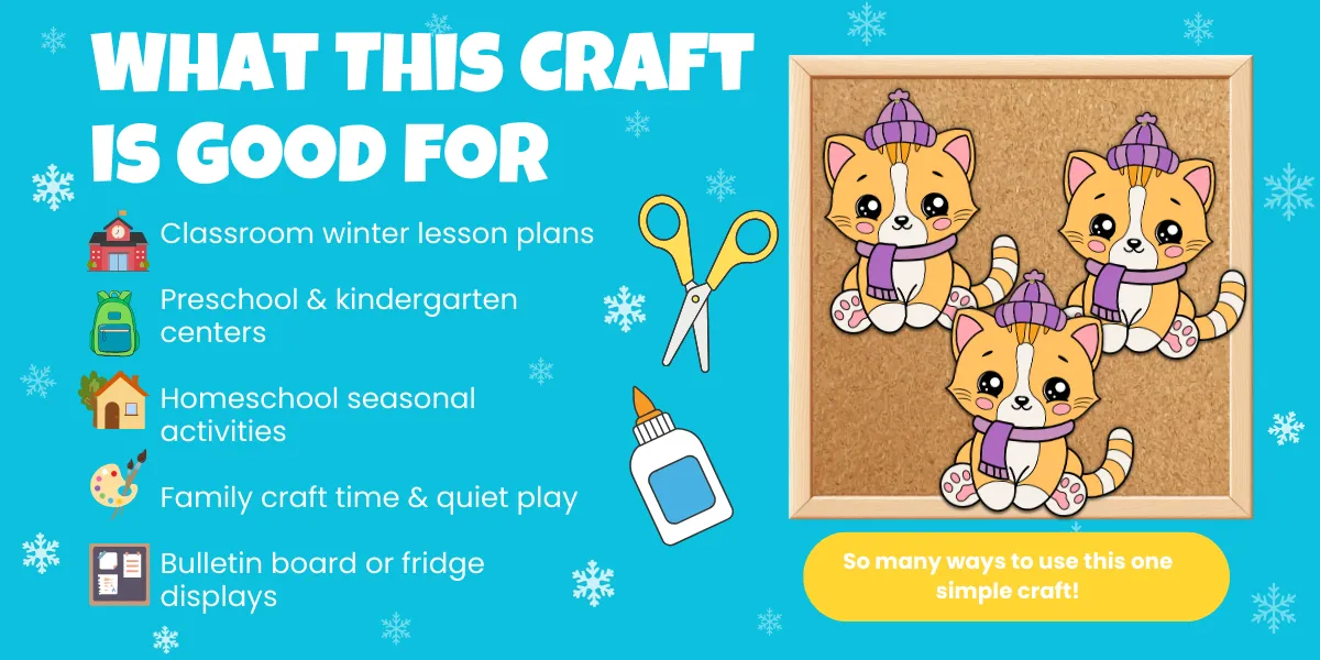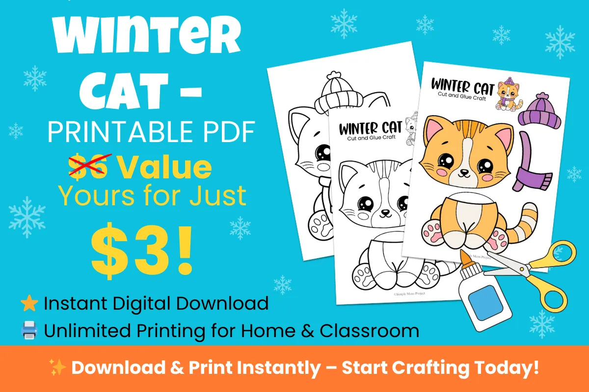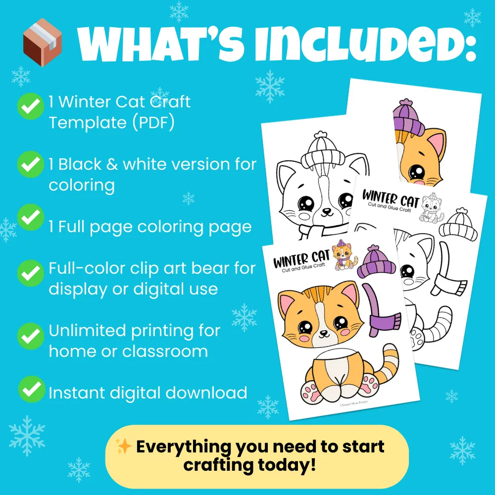 🏡 Homeschool seasonal activities – Use this Winter Cat Craft to enrich your winter studies with hands-on learning. It’s a simple way to bring variety and fun into your lesson plans.