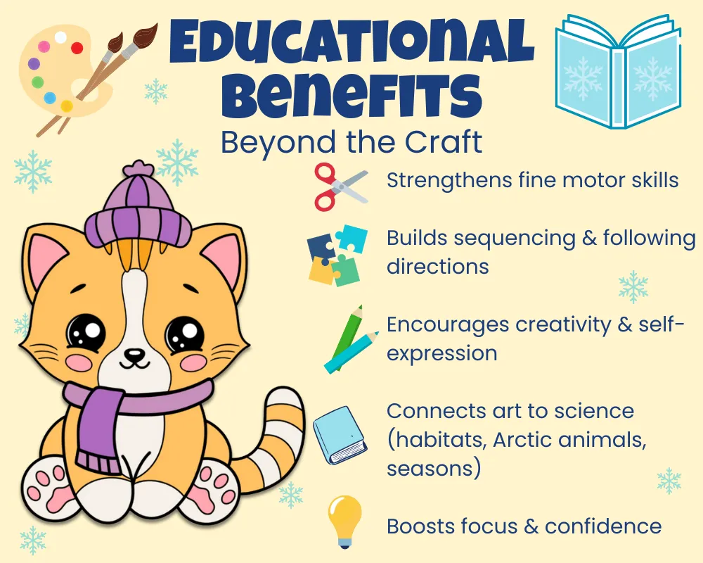 ❄️ Connects art to science lessons – Use this craft to introduce or reinforce topics like Arctic animals, their habitats, and how they adapt to winter.