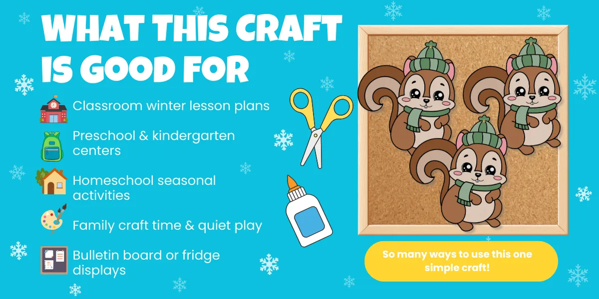 🏡 Homeschool seasonal activities – Use this Winter Squirrel Craft to enrich your winter studies with hands-on learning. It’s a simple way to bring variety and fun into your lesson plans.